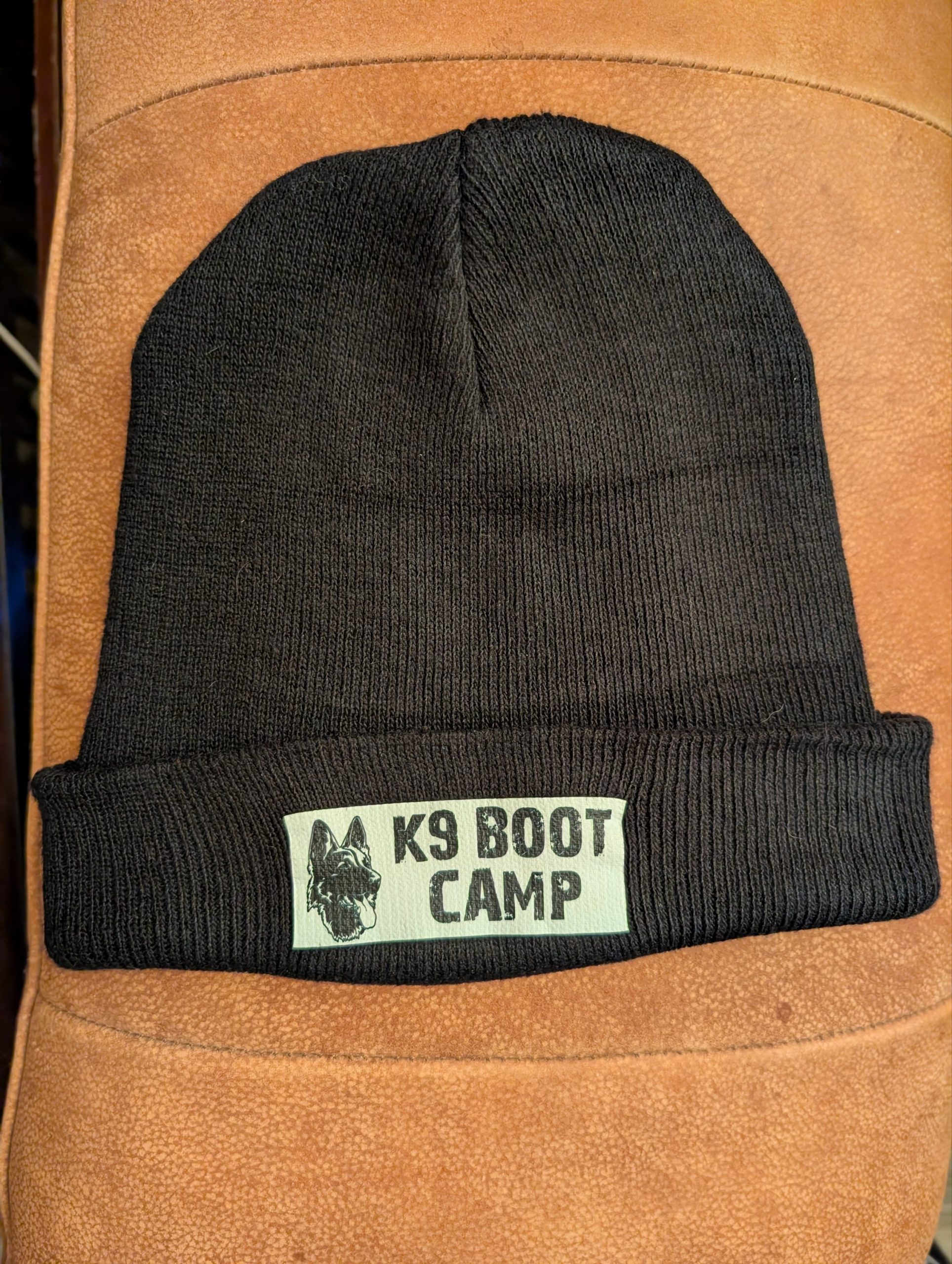 A K9BOOTCAMP Beanie hat, perfect for these cold days, great for wearing under your hood on cold rainy days, they keep your head and ears nice and warm.