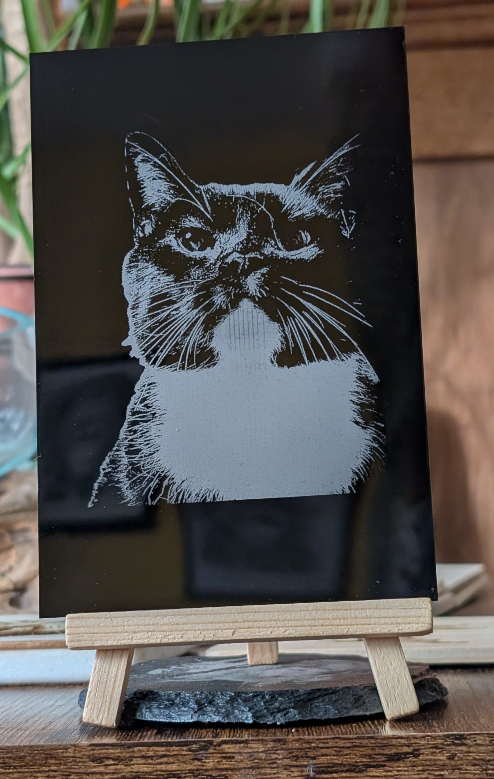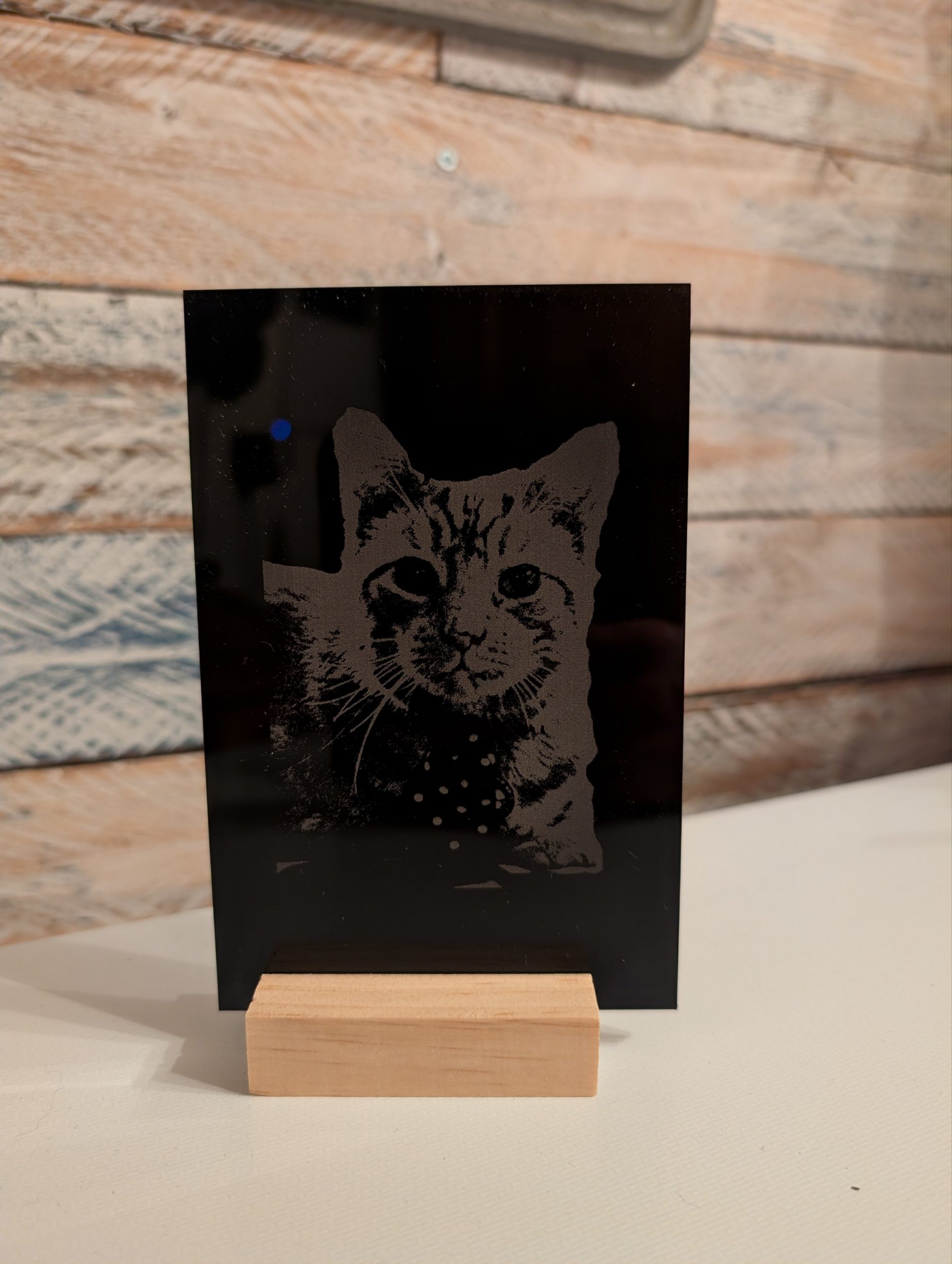 Beautiful personalised acrylic pictures, complete with stand.